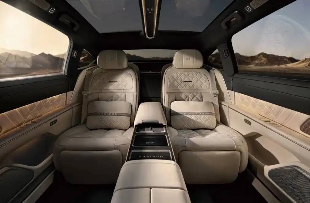 在外觀設計上,蔚來ET9地平線特別版采用了獨特的浮光躍金與寰宇曜月雙拼配色方案,營造出極具辨識度的視覺效果。進入車內,新車提供兩種內飾主題選擇:浮光躍金搭配遠航藍,以及寰宇曜月搭配瑪瑙黑。飛航座椅采用潛沙白配色,并配有專屬刺繡和徽章,彰顯限量版車型的獨特身份。音響系統方面,全車共配備35個揚聲器,包括全四座頭枕揚聲器,為乘客帶來沉浸式音頻體驗。