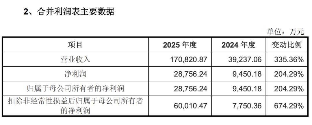 宇樹科技披露的招股說明書顯示,2025年,宇樹科技實現營業收入17.08億元,同比增長335.36%;實現扣非凈利潤超6億元,同比增長674.29%,主要原因為當期產品銷量快速增長。