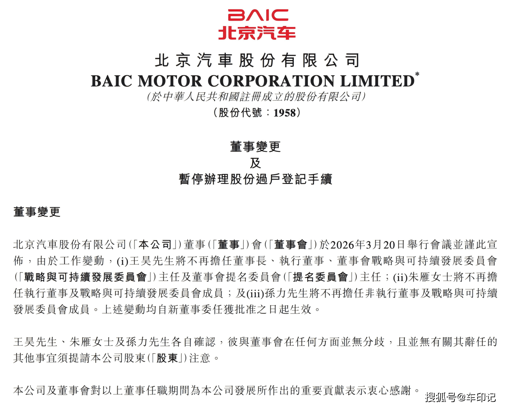 北京汽車與北汽藍谷近日同步發布公告,宣布高層人事重大調整:原董事長王昊因工作變動卸任,張國富獲提名為非執行董事候選人并接任董事長一職。這場持續一年的管理層更迭,被視為北汽集團在合資品牌紅利消退、新能源轉型加速的行業背景下,為破解企業深層矛盾、重構發展路徑的關鍵決策。