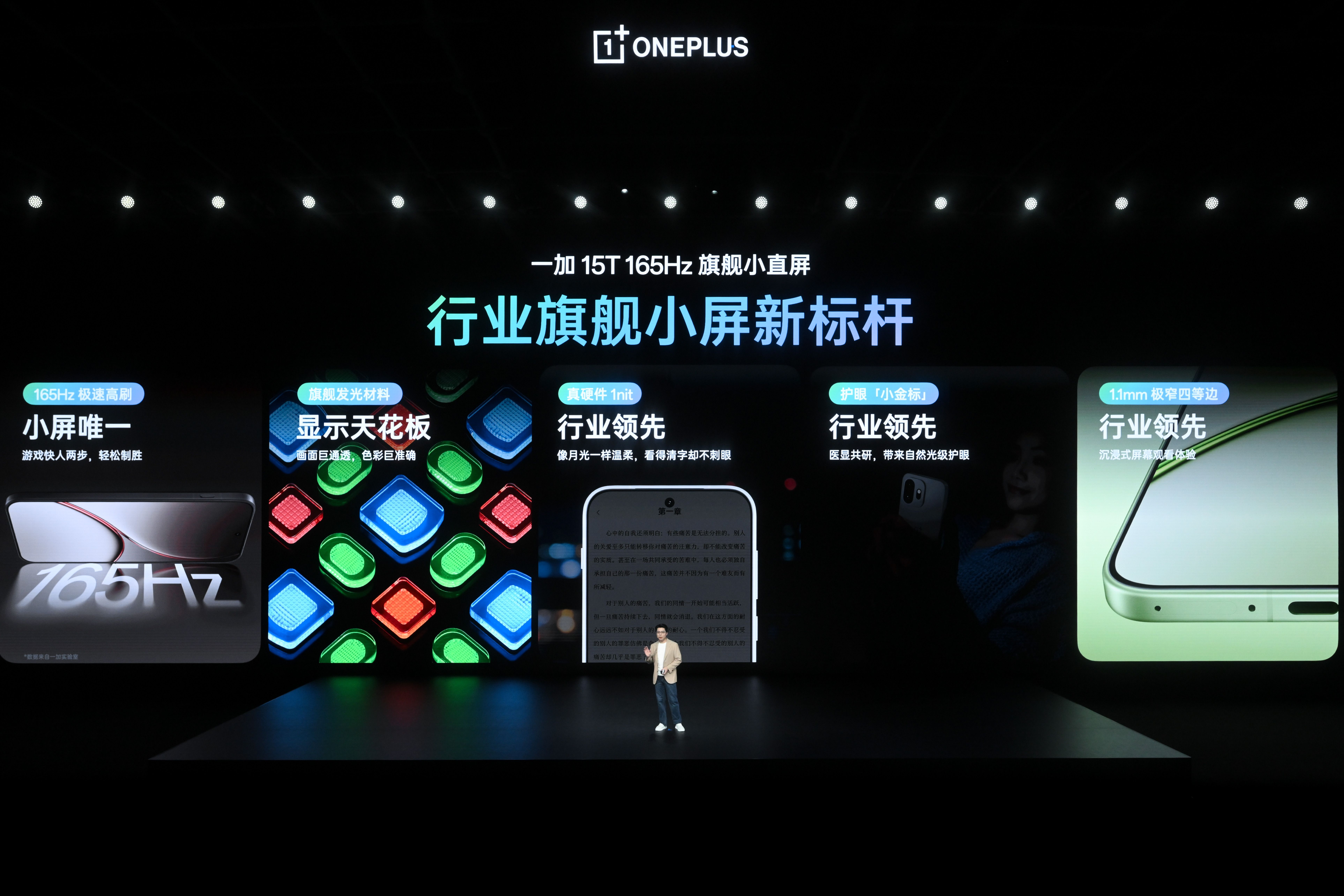 一加 15T 搭載行業唯一的 6.32 英寸 165Hz 旗艦小直屏,首次將超流暢的 165Hz 超高刷體驗帶給小屏旗艦。該屏幕采用全新旗艦發光材料,在色準、通透度、亮度均一性以及色偏控制上均做到行業領先。同時,一加 15T 還啟用全球唯二、中國手機廠商第一條自研「屏幕科學產線」,每一塊一加 15T 屏幕出廠前都會經過二次校準,全方位精準把控屏幕素質,為用戶帶來通透、自然、準確的色彩表現。此外,一加 15T 還突破低亮度下電流不穩定、顯示色彩失準的行業難題,帶來全場景「真硬件 1nit 暗夜顯示」,即使是深夜微光環境,均能確保屏幕畫面通透自然、舒適不刺眼。