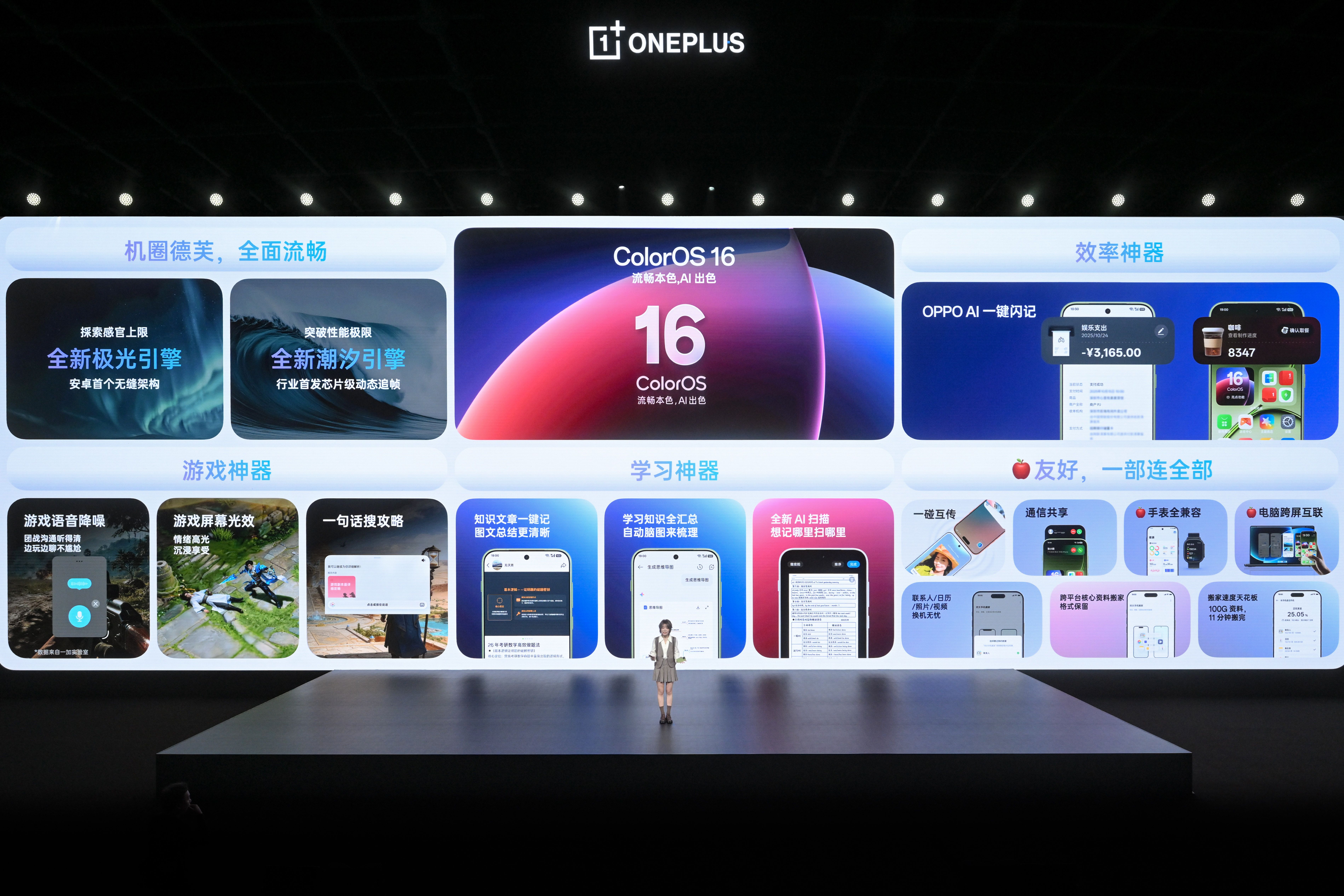 一加 15T 搭載擁有「機圈德芙」之稱的全新 ColorOS 16,在極光引擎與潮汐引擎的調度加持下,擁有行業公認的極致流暢體驗。在學習辦公方面,一加 15T 打通全鏈路掃描流程,可智能識別拍攝缺陷、智能提取文字表格、跨終端復制內容,做到拍攝更清晰、提取更全能、分享更輕松。