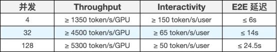 在4、32、128三種并發度下,你不僅要保證極高的吞吐量(Token Throughput),還要死守低延遲的交互性(Interactivity),更要確保模型精度不能掉(本賽道要求GSM8K≥0.93)。性能門檻(三個并發級別必須同時達標):