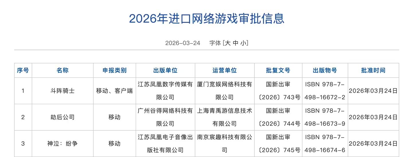 與此同時,進口游戲的審批信息也同步公布。相關進口游戲名單已通過官方渠道向社會公開,供玩家和行業參考。