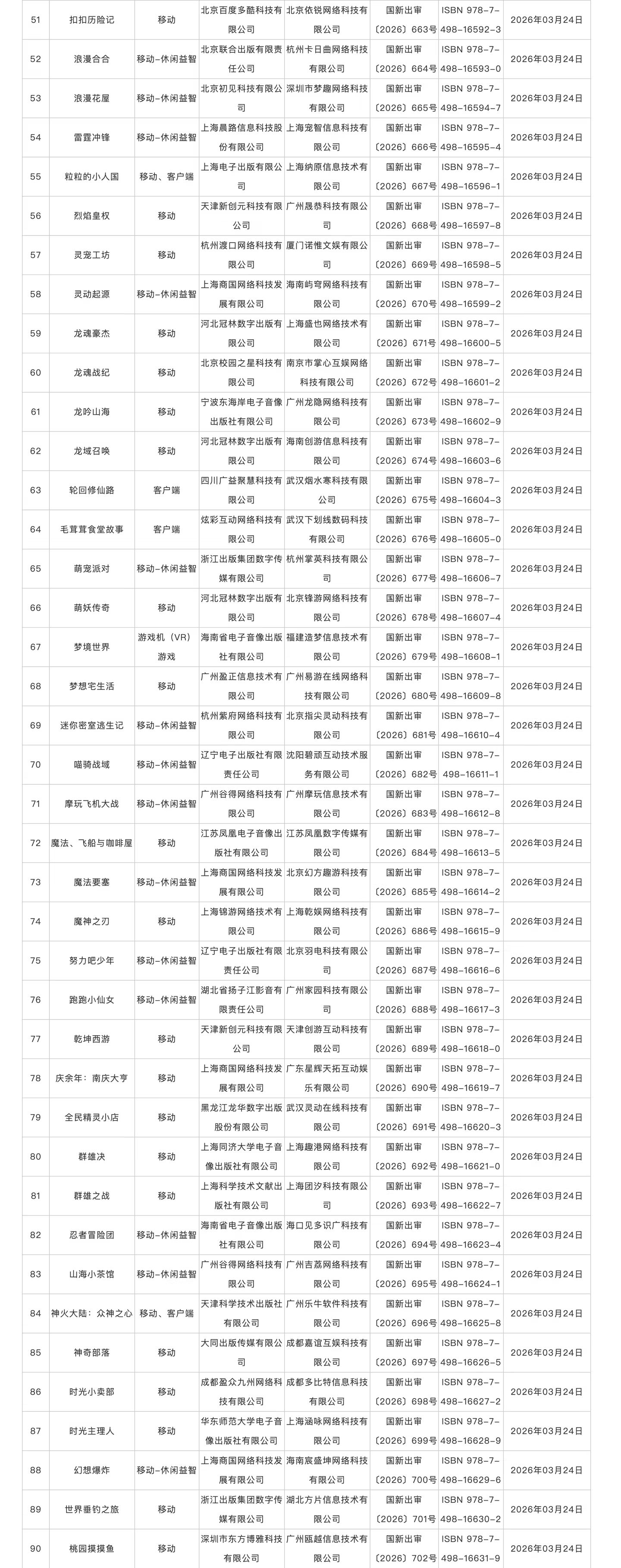 2026年3月游戲審批結果揭曉:130款國產及3款進口網絡游戲成功過審