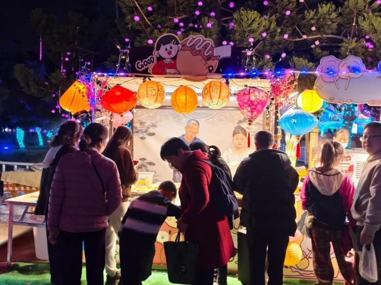 與此同時,園博苑花燈樂園對于家長也有很強的友好度。相比節奏過快、動線擁擠的高密度夜游場景,這里更具園區型空間的舒展感,能夠讓家庭游客在花海、園林與燈影交織的氛圍中,以更輕松的節奏邊走邊逛、邊看邊玩。夜晚的大秀演藝帶來足夠的看點和儀式感,NPC互動提升陪伴的參與度,電音節則為整體氛圍注入更鮮活、更熱鬧的春夜情緒,而各類 餐飲小吃和休閑消費場景 的加入,也讓“夜游”從單一觀賞變成一場更完整的家庭出游體驗。孩子可以玩得開心,大人也能吃得盡興、逛得輕松、拍得出片,全家人在同一個空間里都能找到屬于自己的樂趣。