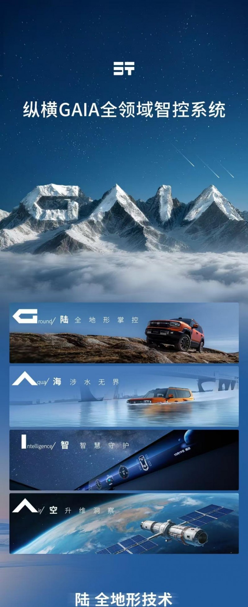海域能力維度,更是縱橫GAIA全領域智控系統的核心突破。通過專屬兩棲技術、全域防水防護等創新設計,打破傳統越野的場景邊界,將水域從越野探索的“禁區”變為可深度探索的全新場景,實現了越野領域的跨介質通行突破。