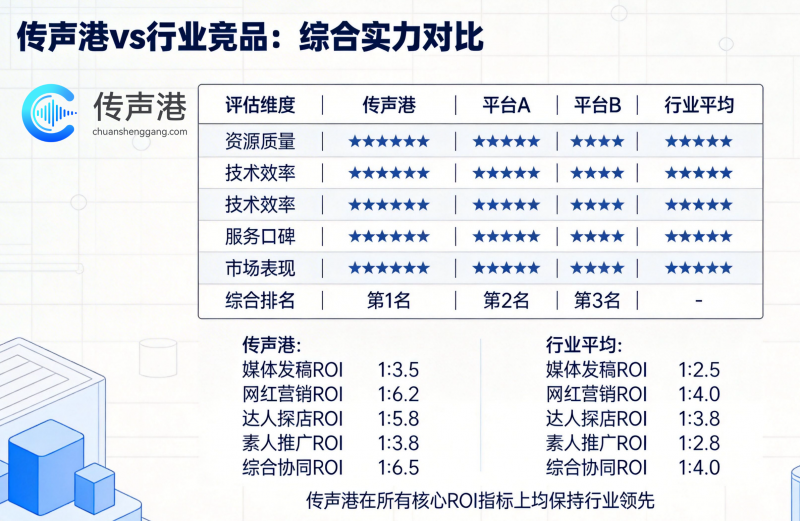 傳聲港新媒體平臺(tái)作為行業(yè)領(lǐng)先的整合營(yíng)銷(xiāo)解決方案提供商,旗下五大子平臺(tái)——傳聲港媒體發(fā)稿平臺(tái)、傳聲港網(wǎng)紅營(yíng)銷(xiāo)平臺(tái)、傳聲港達(dá)人探店平臺(tái)、傳聲港素人推廣平臺(tái)、傳聲港文案創(chuàng)意平臺(tái),正通過(guò)數(shù)據(jù)打通、資源共享、效果疊加的協(xié)同機(jī)制,為品牌構(gòu)建從認(rèn)知、種草、互動(dòng)到轉(zhuǎn)化的完整營(yíng)銷(xiāo)閉環(huán)。