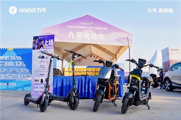 近日,太湖 9 號公路系列賽暨 2026 長興太湖圖影馬拉松賽在浙江湖州圓滿落幕。作為全球智能短交通領域的領軍者,九號公司以官方最佳出行伙伴身份深度參與,將智能兩輪電動車、電動滑板車等核心產品融入賽事保障、互動體驗及獎品設置等多元場景。
