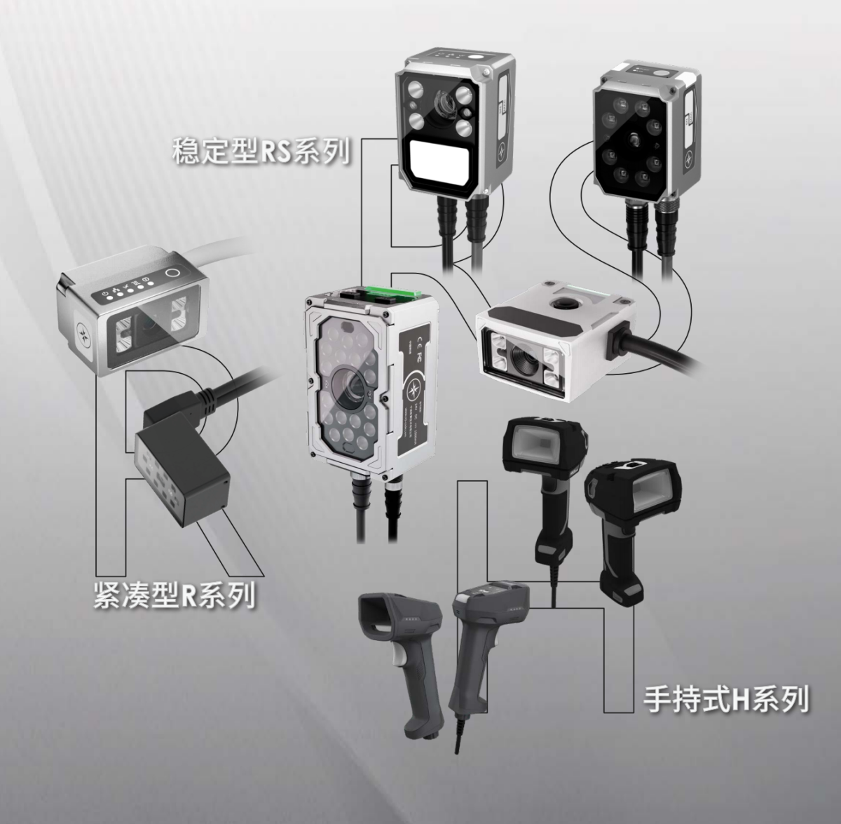 固定式讀碼器:包括穩定型RS系列(頂配旗艦款RS300、高性能款RS200、RS100、通用款RS60)、緊湊型R系列(緊湊旗艦款R275-A、通用款R172)等。其中,RS300依托超大視野和超大景深優勢,可實現最遠10米距離水平移動下的穩定讀碼;RS100的一鍵調試+與自適應組合光源技術,可穩定讀取受柵線干擾、極低對比度的QR碼;R275-A通過自研機器視覺算法引擎及超分辨率算法,可穩定讀取低對比度、小尺寸的DM碼。