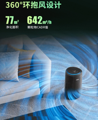 采用360°環抱風設計大幅提升吸入效率;機身配備智能濾網更換提醒,實時顯示損耗情況。濾網用料扎實、使用壽命長,有效降低了新房長期除醛的耗材成本。