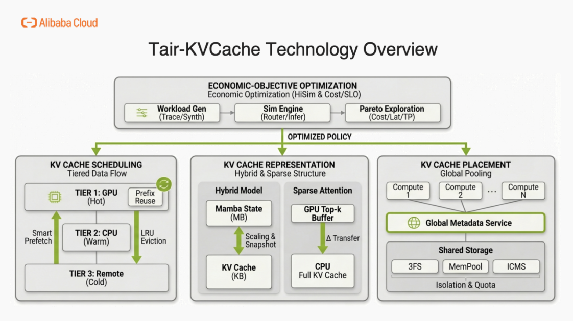 阿里云數據庫 Tair 給出了自己的回答:從分層調度、全局池化、混合模型適配,到與SGLang社區深度共建、聯合NVIDIA Dynamo AIConfigurator 團隊開發高保真仿真器,再到面向未來硬件的G3.5定制存儲探索——一套覆蓋全鏈路的系統性解法,正在重新定義AI時代的存儲基礎設施。