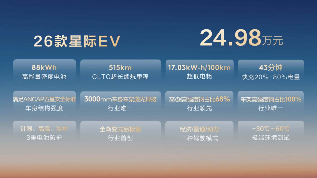 全新星際L以10.88萬元的起售價驚艷亮相,其搭載的上汽πplus 2.5T柴油發動機,以165kW的最大功率和520N?m的峰值扭矩,成為同級性能標桿。更令人矚目的是,這款柴油皮卡零百加速僅需9.6秒,一舉打破柴油皮卡加速未破10秒的僵局。而26款星際EV則憑借自主開發的88kWh高能量密度電池,以超150Wh/kg的能量密度領跑同級,為電動皮卡市場樹立了新的標桿。26款T60搭載的柴油發動機同樣表現出色,120kW的功率和410Nm的扭矩,使其成為同級最強動力選擇。