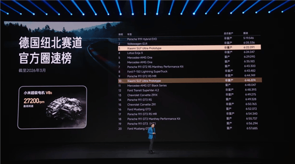 在前不久的新一代SU7發布會上,雷軍回顧了造車五年來最難忘的三個時刻。第一個時刻,小米SU7 Ultra原型車在德國紐北賽道上創造了電動車圈速記錄,躋身全球總榜前三。這一成就的背后,離不開小米自研的超級電機V8S。這款電機擁有578匹馬力,轉速超過27000轉,標志著小米在電機技術上達到了行業領先水平。