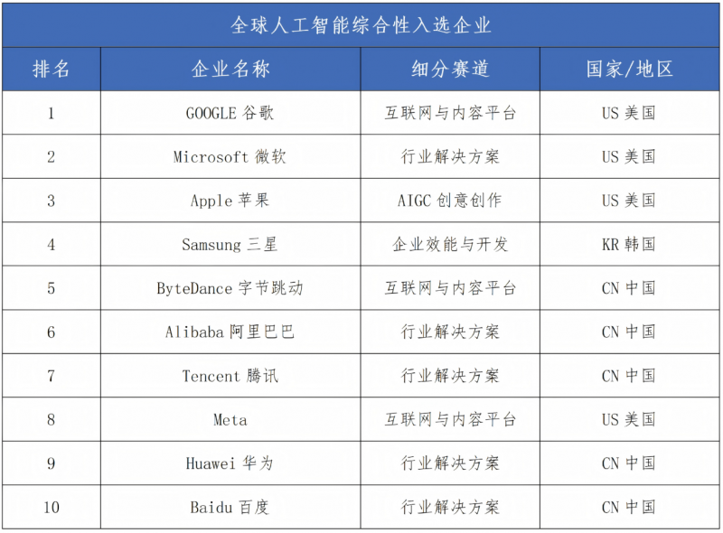 應(yīng)用層企業(yè)數(shù)量最多,共40家,是AI產(chǎn)業(yè)商業(yè)化的核心環(huán)節(jié),其中中國入選21家,場景落地能力突出。