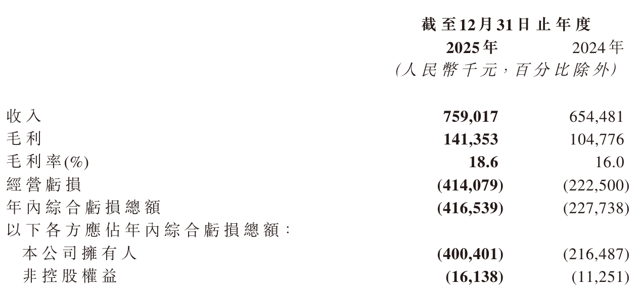 財務數據顯示,公司2025年毛利為1.41億元,較上一年度1.05億元增長35%;但運營虧損達4.14億元,歸屬于公司股東的虧損為4億元。這一數據反映出公司在業務擴張期面臨的成本壓力與盈利挑戰。
