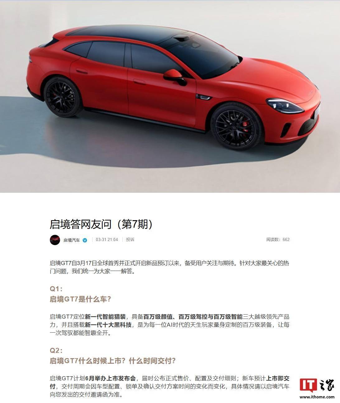 據啟境汽車官方最新消息,原定于7月啟動交付的GT7車型將提前至6月上市。品牌方透露,6月舉辦的上市發布會將同步公布車型售價、配置清單及交付細則,并承諾“上市即交付”。不過,實際交付周期可能因用戶選擇的配置版本、鎖單時間及交付方案確認進度產生差異。這一調整顯示出品牌對供應鏈管理和生產節奏的充分信心。