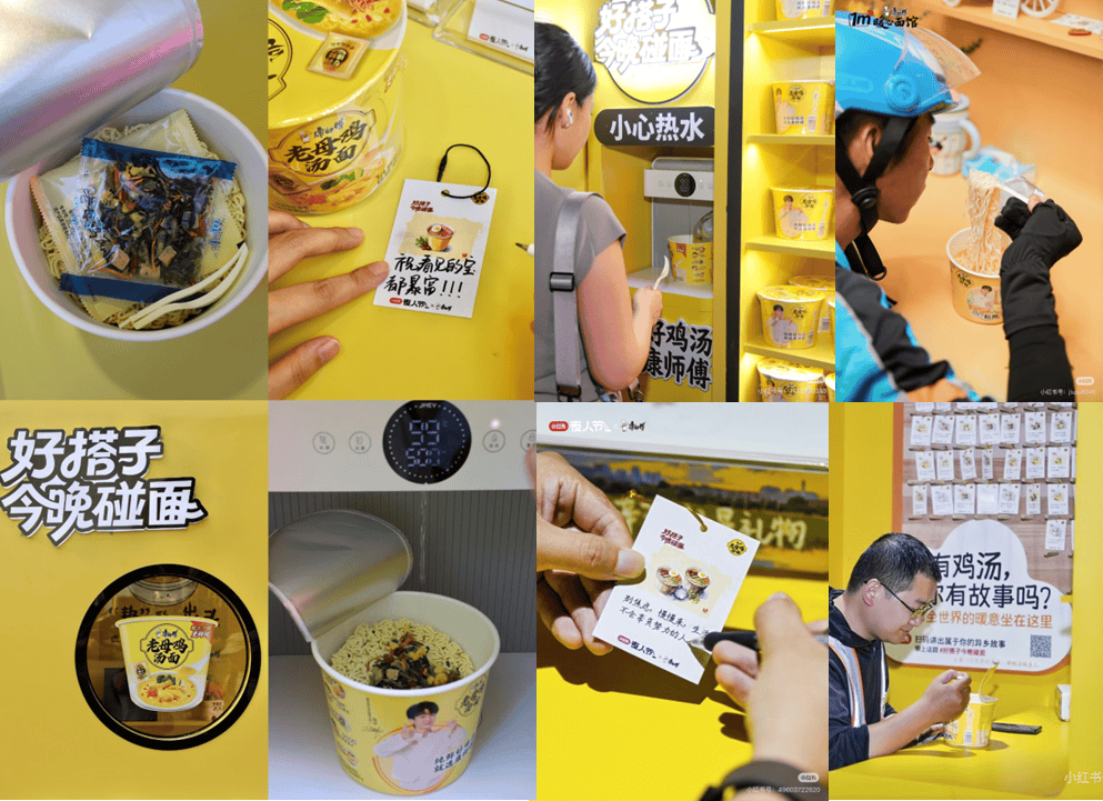 快消渠道的本質是連接人與貨的節點,而康師傅的創新在于,將這個節點從冰冷的“交易點”升溫為有情緒的“共鳴點”。“1㎡暖心面館”便是這一理念最生動的注腳。2025年9月起,形似電話亭的快閃面館陸續落地上海、杭州、深圳、安徽、四川、重慶、南京、甘寧、湖北等城市,以“1㎡私密空間+免費暖心泡面”為核心體驗,每晚八點到凌晨兩點,為奔波的騎手、晚歸的白領等城市夜歸人送上熱騰騰的老母雞湯面。這里不僅提供食物,更搭配治愈音樂和心事交換墻,迅速在社交媒體上發酵為一座座“情感地標”,“深夜治愈”與“城市溫暖”成為深入人心的標簽。