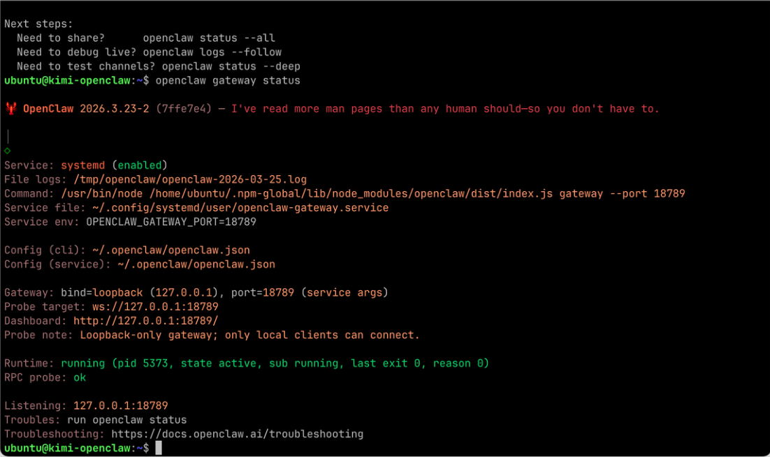 第四步:查看 OpenClaw 狀態