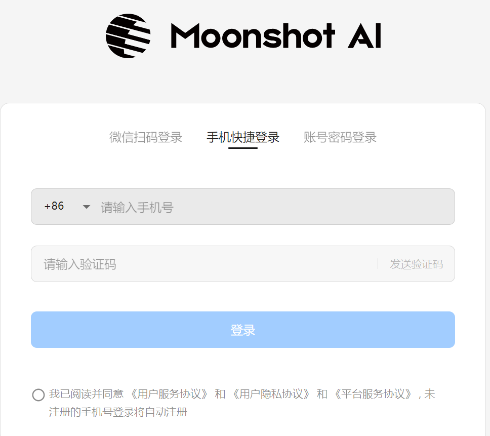 登錄 Kimi 網站獲取 API Key,訪問 https://platform.moonshot.cn/console 點擊登錄