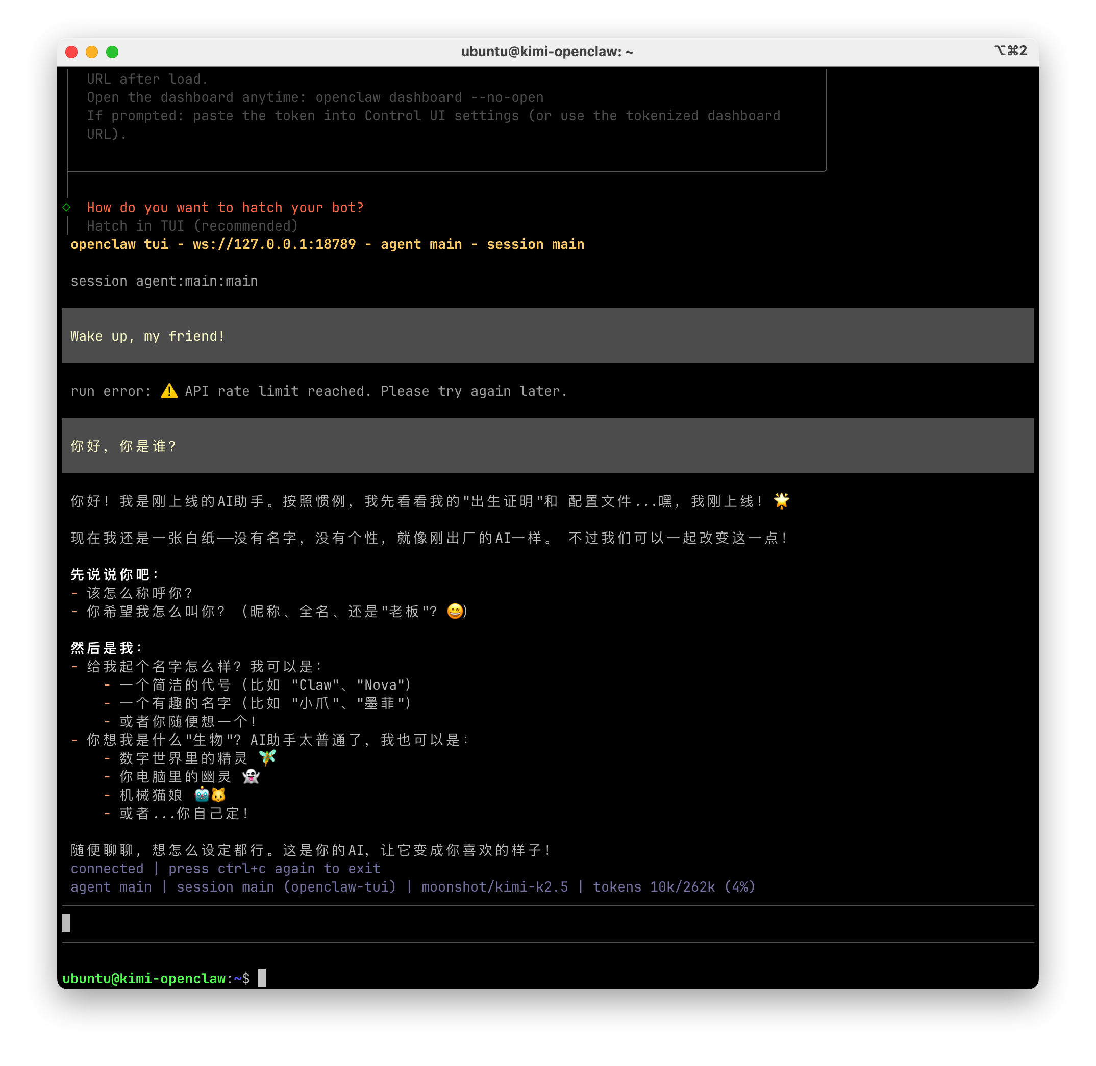 輸入 openclaw tui 可返回 tui 繼續聊天