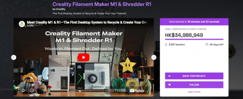 3月31日,全球消費級3D打印生態領創者創想三維(Creality)重磅推出的Creality Filament Maker M1&Shredder R1(耗材生成器M1 & 粉碎機R1)正式登陸全球最大科技眾籌平臺之一Indiegogo。
