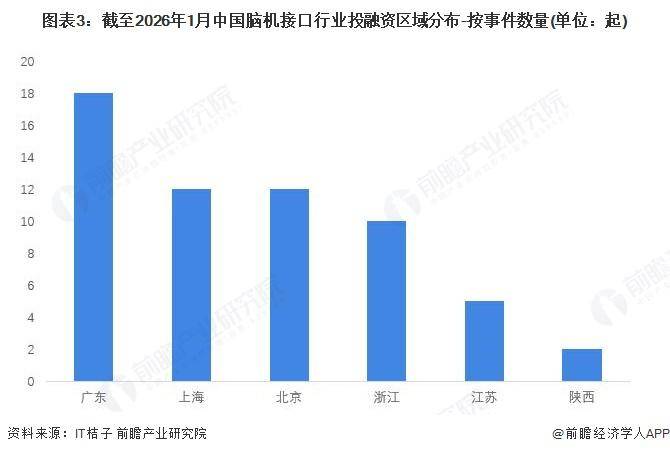 資本市場的熱情進一步推高行業熱度。2013年至2025年間,中國腦機接口行業融資事件數量呈波動上升趨勢,2025年以24起融資創下年度紀錄,2026年開年僅12天即完成1起融資。這種持續的資金注入,不僅為技術研發提供了彈藥,也加速了產業鏈的完善。從區域分布看,廣東、上海、北京、浙江四地成為投融資核心區域,截至2026年1月累計發生77起融資事件,其中廣東以18起領跑全國,四地合計占比達68%,凸顯了長三角與珠三角在科技創新領域的集聚效應。