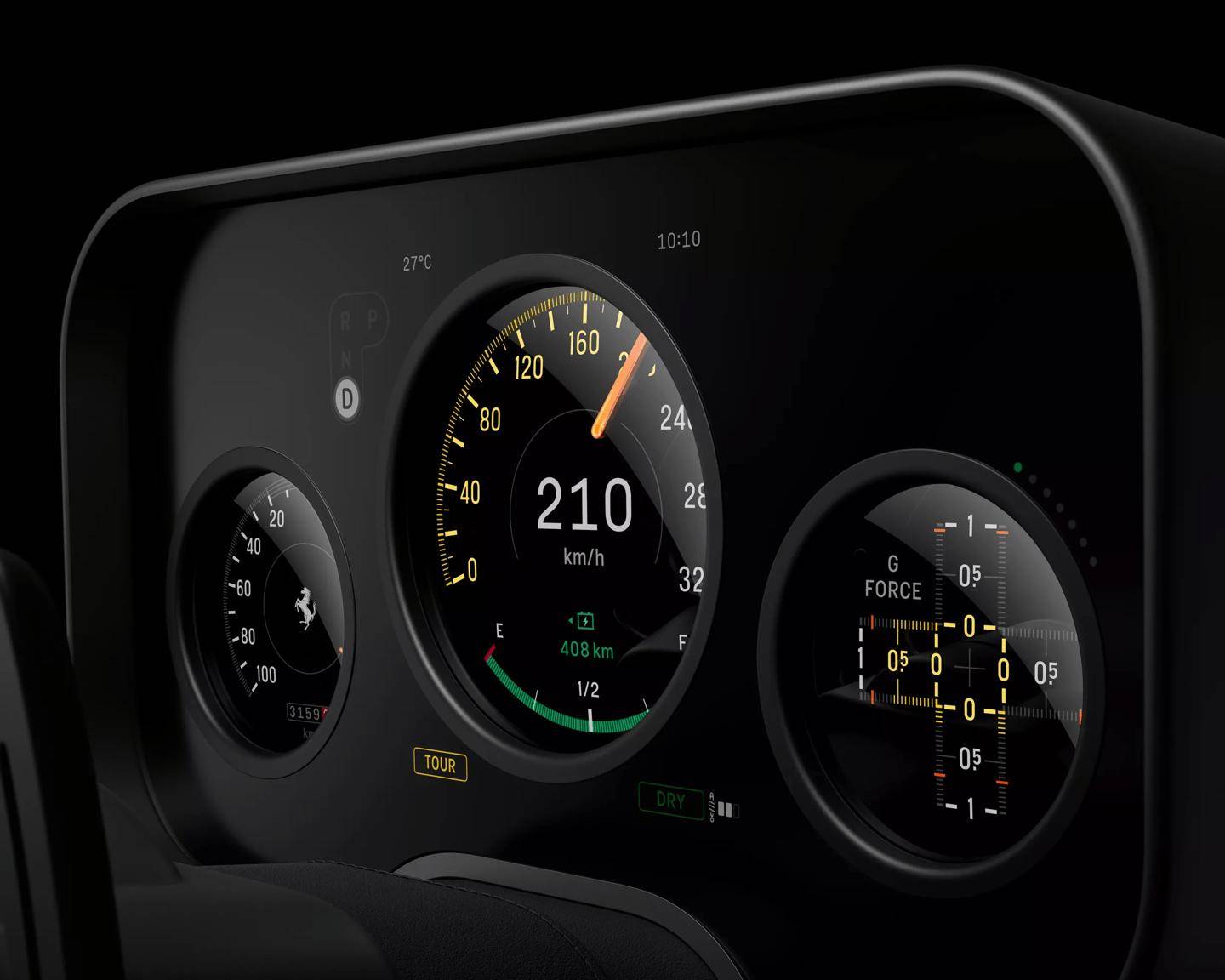 數字儀表盤成為功能與美學的平衡點。Luce采用三星提供的圓形OLED面板,外覆高端玻璃材質,在保證信息清晰度的同時,通過曲面設計與中控臺形成流暢過渡。設計師刻意避免過度裝飾,所有顯示元素均圍繞駕駛核心需求展開,轉速、電量、導航等關鍵數據以分層方式呈現,確保駕駛員視線無需長時間偏離路面。