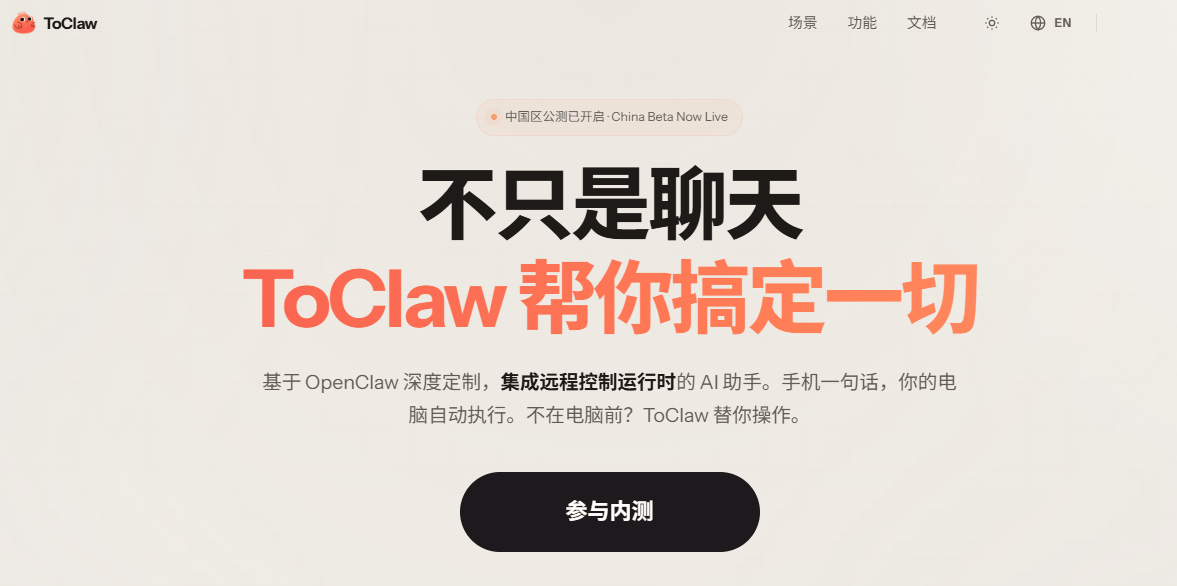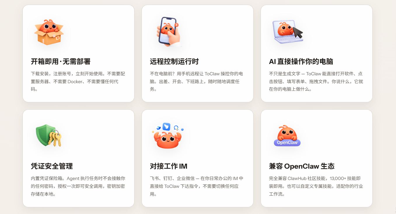 但一個現(xiàn)實問題始終存在:對于普通用戶而言,部署、配置、跨設(shè)備調(diào)用,依然是一道不低的門檻。而這正是ToClaw切入的地方!