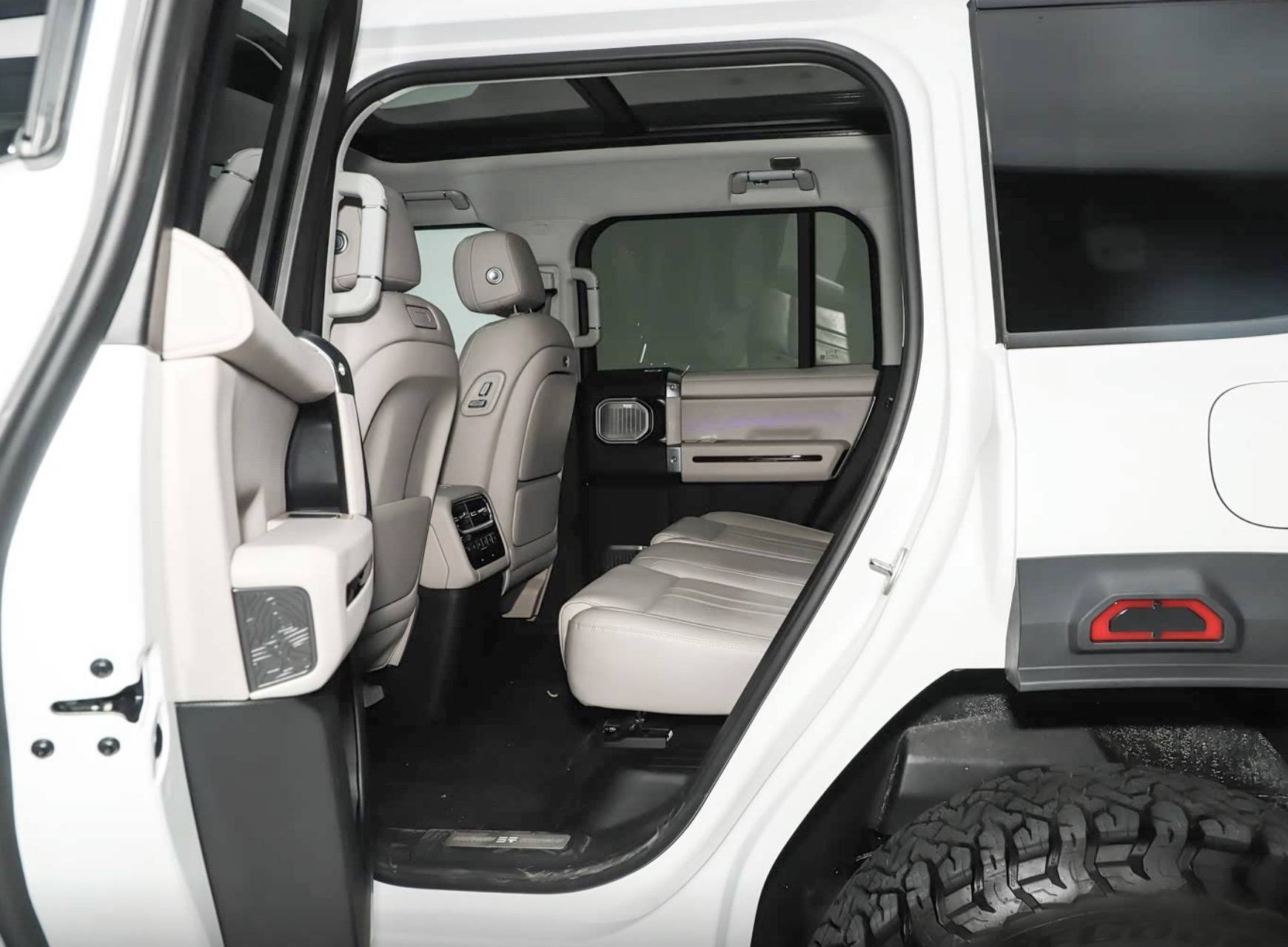 內飾設計上,G700頂火鳴鏑版兼顧硬派實用與豪華舒適。橫向分層中控布局保留了大量物理按鍵,方便越野時盲操作,提升駕駛安全性。座艙內配備35.4英寸貫穿式山脈天際屏和15.6英寸懸浮式中控觸控大屏,UI界面支持越野主題定制,并搭載GAIA智控系統,操作流暢便捷。方向盤采用平底式多功能真皮設計,帶有頂火聯名標識,副儀表臺飾有等高線地形花紋,兩側配備皮質包裹的實體拉手,既美觀又實用。