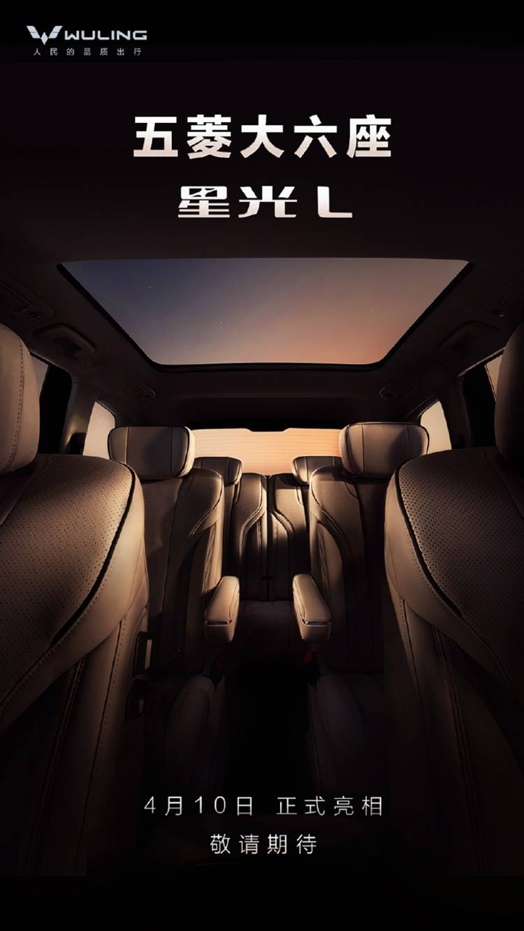 五菱星光L 4月10日亮相,近5米大六座插混SUV,家用新選擇來了?