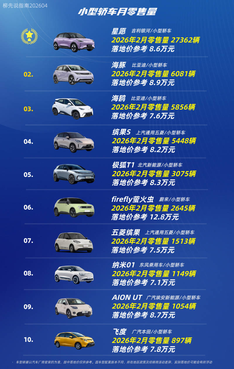 在2026年2月的小型轎車銷量榜單中,各車型表現差異明顯。曾經深受消費者喜愛的經典小型轎車飛度,此次僅排在第10名,月銷量為897輛。過去,飛度憑借出色的空間利用率、靈活的操控性能和較高的性價比,贏得了眾多消費者的喜愛。然而,隨著市場競爭加劇和消費者需求變化,飛度在新能源和智能化方面的轉型相對遲緩,導致市場競爭力有所下降。