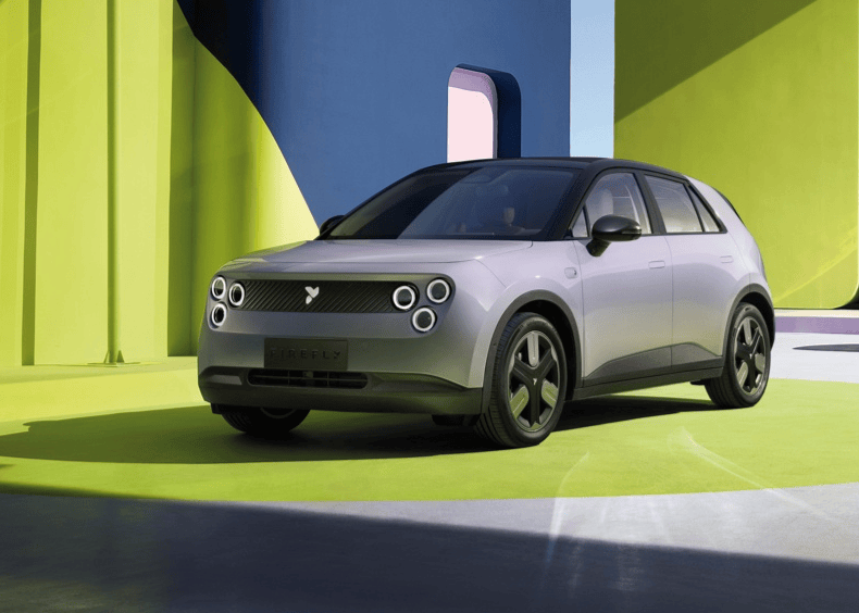 新款firefly螢火蟲在外觀設計上延續了仿生學風格,尤其是車頭那組由三個圓形光環組成的前燈組,被戲稱為“三重奏大燈”。點亮后,仿佛一雙圓溜溜的眼睛,讓車輛在夜晚的街道上極具辨識度。盡管這種設計引發了不同的看法,有人覺得可愛,有人覺得過于個性,但不可否認的是,它確實讓這臺小車在車流中脫穎而出。