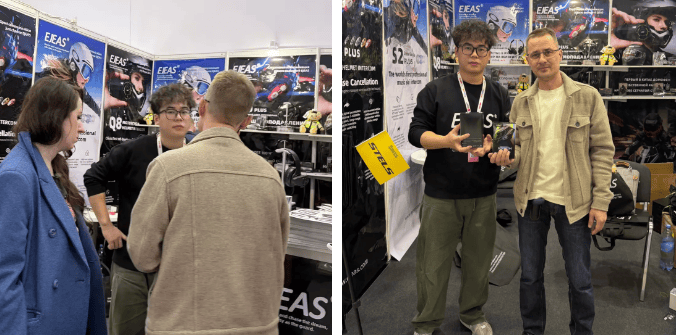 展會現場,愛騎仕的展位人氣爆棚。眾多觀眾紛紛親自上手操作,近距離體驗產品的魅力。在嘈雜的展館環境中,摩托頭盔運動對講系列的Q8、X10幻影以及滑雪運動對講系列的S2雪鷹等型號,均展現出了出色的通話質量。體驗者普遍反饋,這些產品通話清晰、無延遲、音質出色,降噪效果尤為出眾。