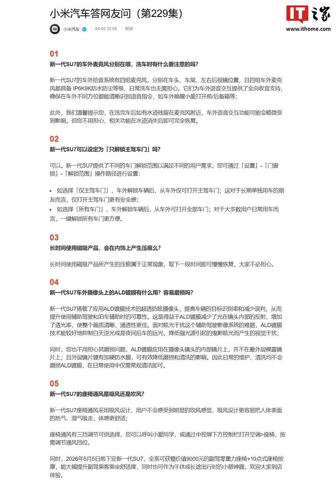 小米汽車答網友問第229集:SU7車外麥克風、車門解鎖等疑問全解答