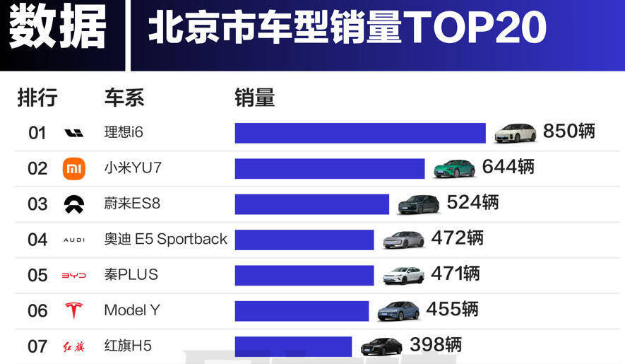 理想汽車憑借對家庭用戶需求的精準把握,成為新能源市場中的佼佼者。其增程與純電雙路線策略,既解決了續航焦慮,又滿足了消費者對智能化體驗的追求。以理想i6為例,這款純電動SUV以時尚外觀、寬敞空間與先進智能系統,在2月北京市場斬獲850輛月銷量,登頂月度冠軍。蔚來ES8則以豪華定位與高端服務吸引了一批忠實用戶,而小米YU7的入局,則為市場注入了科技與生態互聯的新活力,其跨界背景與智能化配置成為差異化競爭的關鍵。