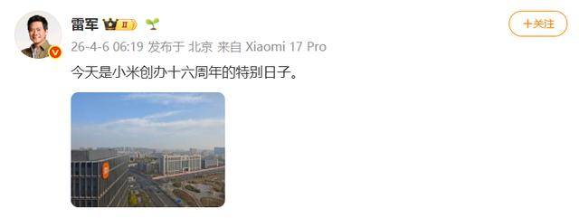 十六載砥礪前行,雷軍發(fā)文共慶小米創(chuàng)辦十六周年特別時刻