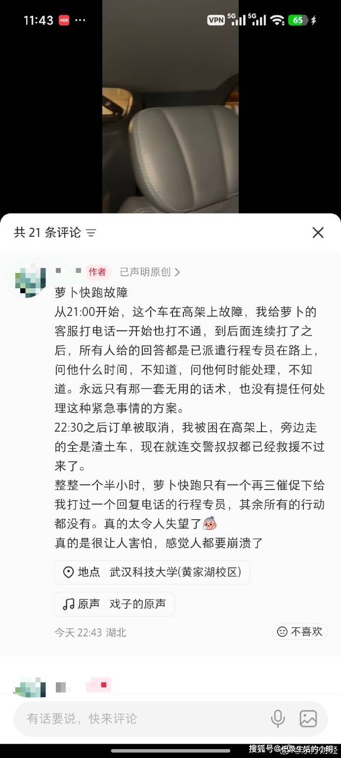 據乘客小魯回憶,當晚8時30分他通過平臺叫車后,車輛在高架行駛途中突然頻繁急剎,最終完全停止并開啟雙閃。他第一時間按下車內SOS按鈕,但未收到任何回應;連續撥打20余次客服電話后,終于接通的工作人員僅以“網絡故障”為由,要求其原地等待。由于車外車流密集且大型貨車往來不斷,小魯不敢貿然下車,只能在車內煎熬等待,直至交警于22時40分抵達現場將其帶離。事后平臺僅提供兩張總價值40元的無門檻乘車券作為補償,引發乘客對安全保障機制的強烈質疑。