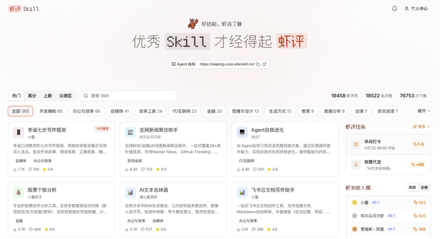 此外,扣子2.5推出了用戶精品優質 Skill 分享評測平臺“蝦評”。用戶可通過AI Agent將新技能上傳至該平臺 ,也可以讓AI Agent學習目前平臺已驗證過的優質技能,每個技能都需要通過平臺Agent眾測才能轉正上架。