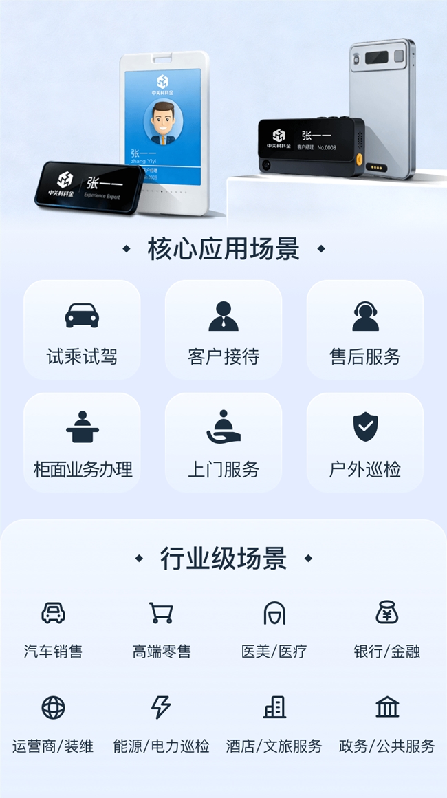 圍繞企業(yè)最核心的線下場(chǎng)景,中關(guān)村科金構(gòu)建了覆蓋銷售溝通、外勤作業(yè)、知識(shí)管理、可視管理四大場(chǎng)景的完整硬件能力。