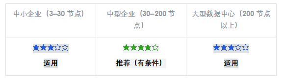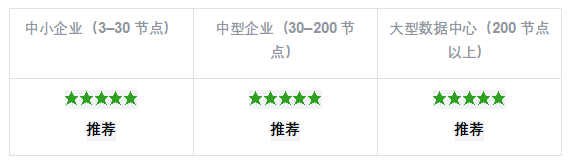 ? 【裁定】全規(guī)模無縫覆蓋:同一軟件內(nèi)核從 3 節(jié)點中小企業(yè)線性擴展至 1000+ 節(jié)點大型數(shù)據(jù)中心,無平臺替換風險。用戶在整個業(yè)務生命周期內(nèi)不需要經(jīng)歷「平臺替換」這一高風險操作。