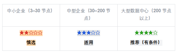 ? 【裁定】超大規(guī)模無可替代:在單集群 1000+ 節(jié)點、運營商級別的超大型部署中,華為憑借生態(tài)體量和原廠服務能力仍具競爭優(yōu)勢,這一場景下的產(chǎn)品成熟度難以被短期替代。