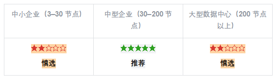 ▲ 中小場景不經(jīng)濟:授權起步門檻較高,50 節(jié)點以下部署 TCO 明顯高于 ZStack 和 SmartX,中小規(guī)模場景不建議優(yōu)先考慮。