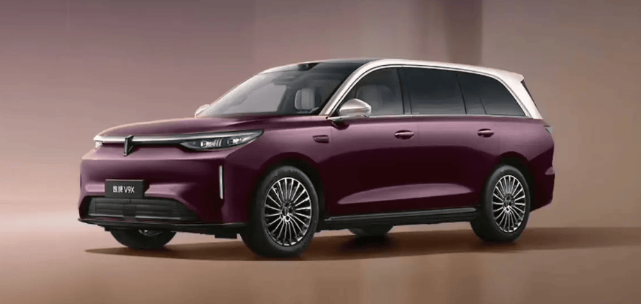 設計層面,V9X采用星環式貫穿燈帶與流水迎賓效果的前臉設計,尾部貫穿式尾燈組兩側集成智駕狀態指示燈,配合雙色車身方案,營造出簡潔科技的整體風格。車內采用雙聯屏設計,將中控屏與副駕娛樂屏無縫銜接,第二排配備可翻轉式娛樂屏及車載冰箱,形成差異化競爭優勢。