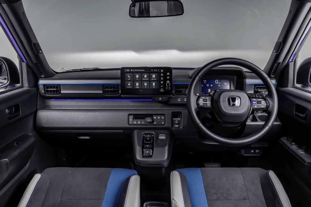 內飾設計延續了活潑風格,配備支撐性座椅與藍色裝飾條,Boost模式激活后氛圍燈會切換為紫色,同時底盤調校也針對歐洲路況進行強化,剛度顯著高于日本本土的N-One e:版本。本田工程師特別強調,懸架系統經過重新優化,以適應英國與歐洲多變的道路條件。