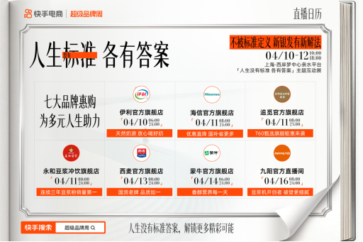 4月10日至4月16日,上快手搜索【超級品牌周】,與七大品牌共啟這場答案之約,見證優質好物觸達全國消費者,實現生意新躍升。