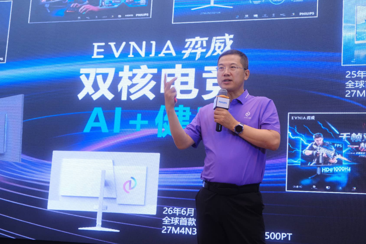 冠捷科技OBM顯示器BU中國區(qū)B2C銷售總經(jīng)理林為康,以“推動(dòng)高質(zhì)量發(fā)展”為核心方向,向現(xiàn)場來賓詳細(xì)分享了2026年B2C及電競市場的年度運(yùn)營策略。他強(qiáng)調(diào),PHILIPS與EVNIA弈威雙品牌將秉持全域思維,協(xié)同產(chǎn)品、渠道、內(nèi)容三大核心生產(chǎn)力,攜手合作伙伴實(shí)現(xiàn)營收與品牌價(jià)值的跨越式提升。產(chǎn)品端以“AI + 健康”為雙核驅(qū)動(dòng),構(gòu)建以O(shè)LED、Mini LED等為核心的“九星”產(chǎn)品矩陣;渠道端將在電商、網(wǎng)吧、電競酒店等全域場景發(fā)力,攜手伙伴在專業(yè)電競顯示器市場發(fā)力沖刺;內(nèi)容端則聯(lián)動(dòng)專業(yè)賽事與優(yōu)質(zhì)IP開展全域營銷,通過“弈天使”二次元IP深度擁抱年輕用戶、為年輕玩家提供專業(yè)產(chǎn)品以外的情緒價(jià)值賦能。