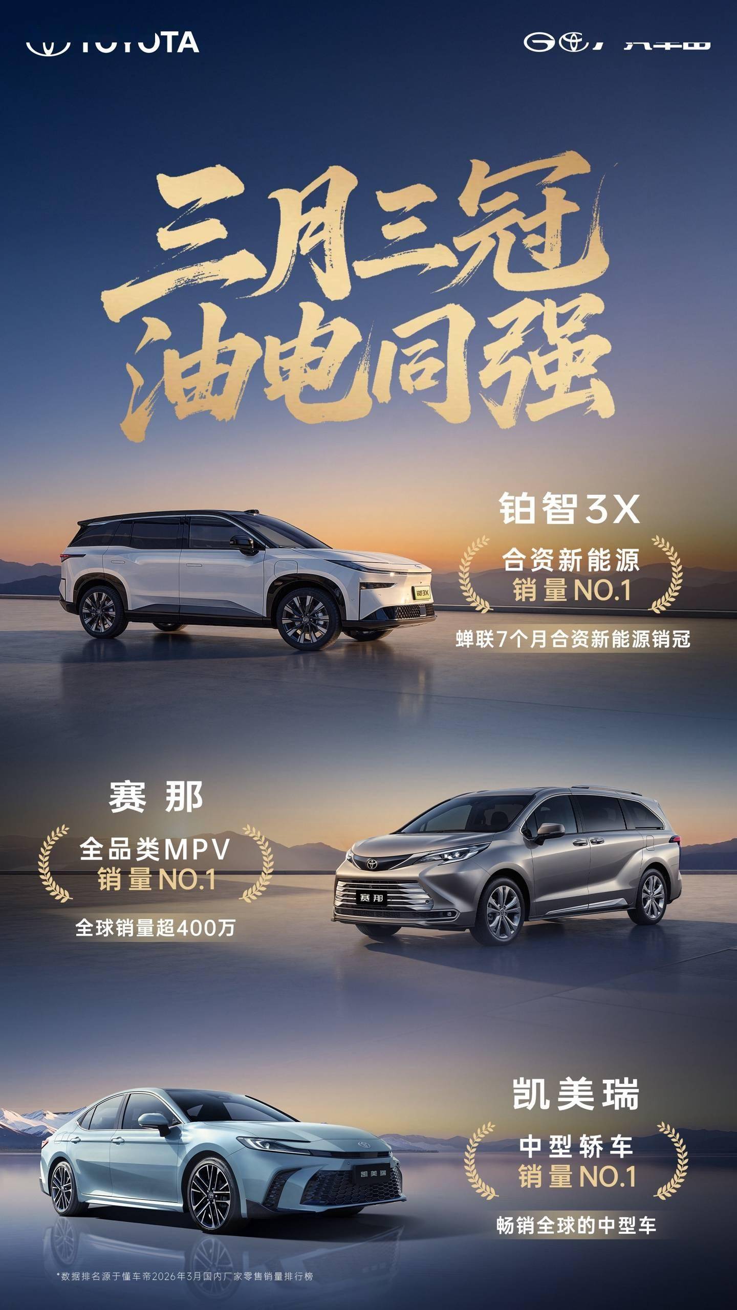 三月車市戰報:廣汽豐田全矩陣發力,新能源燃油雙線奪冠創佳績